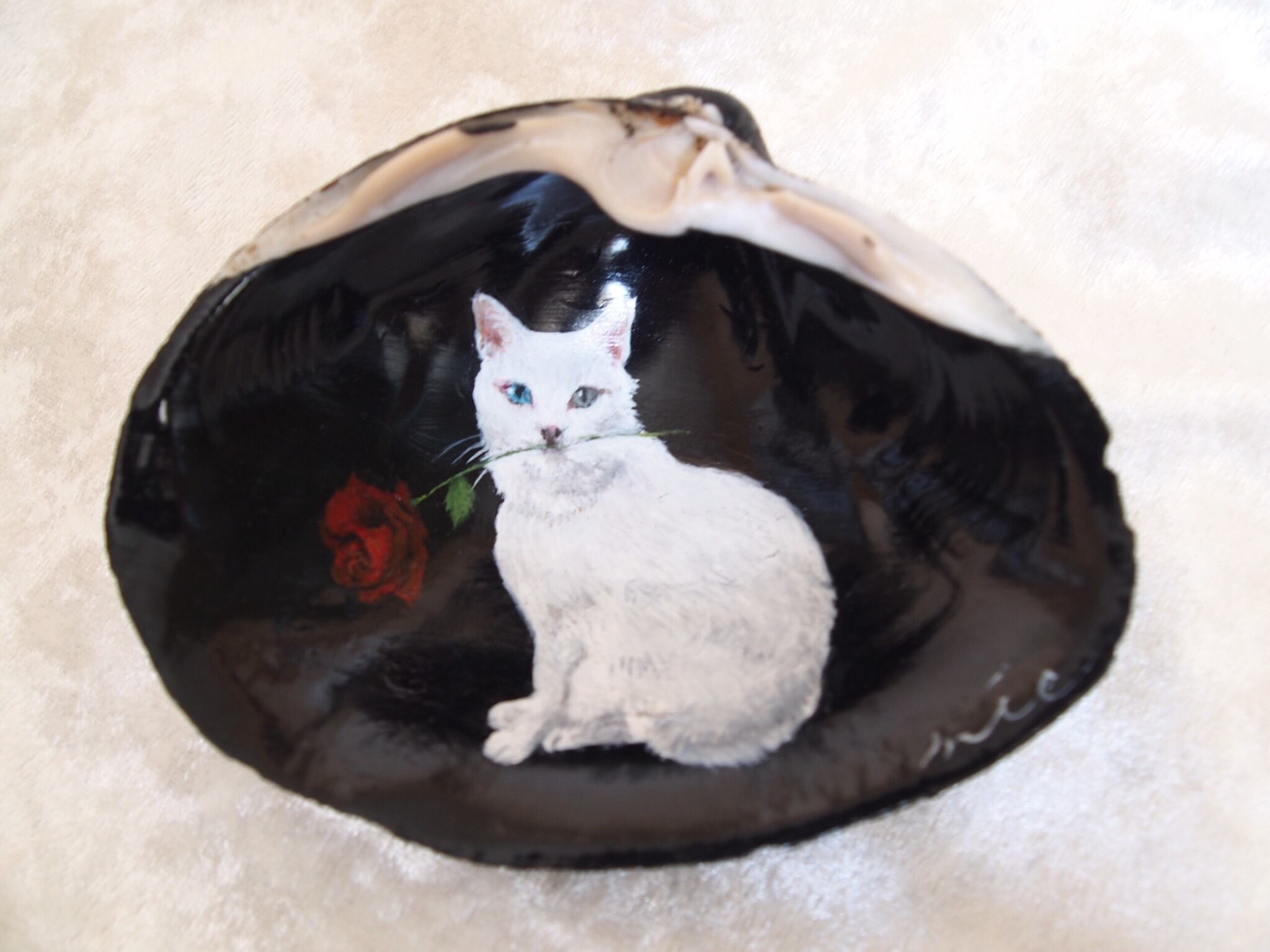 海で拾った横10cmくらいの北寄貝に描いた作品です。