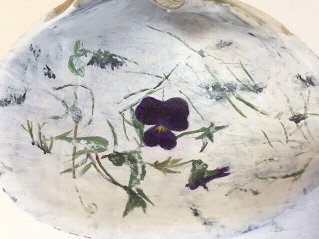 初雪の降った日、ひっそりと咲いていた菫を描きました。